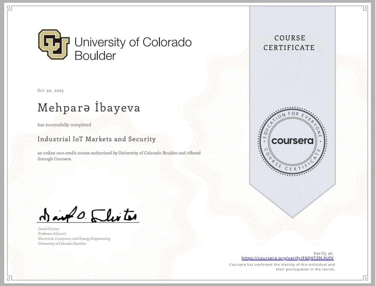 Colorado universetinin(Abş) rəsmi sertifikatı