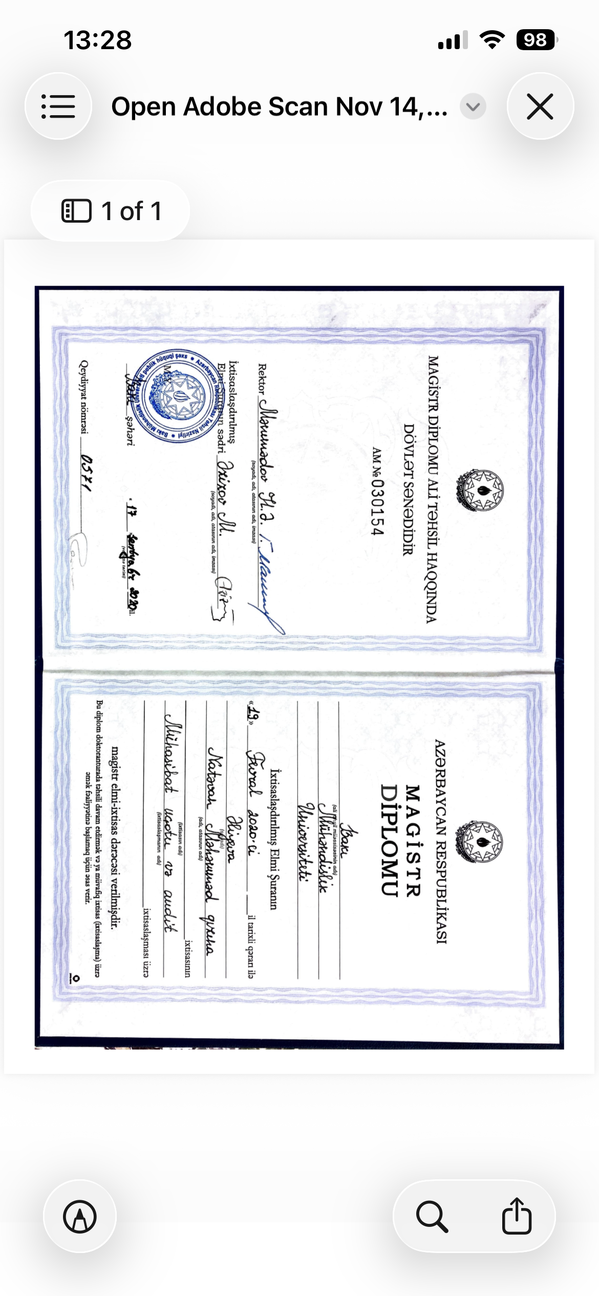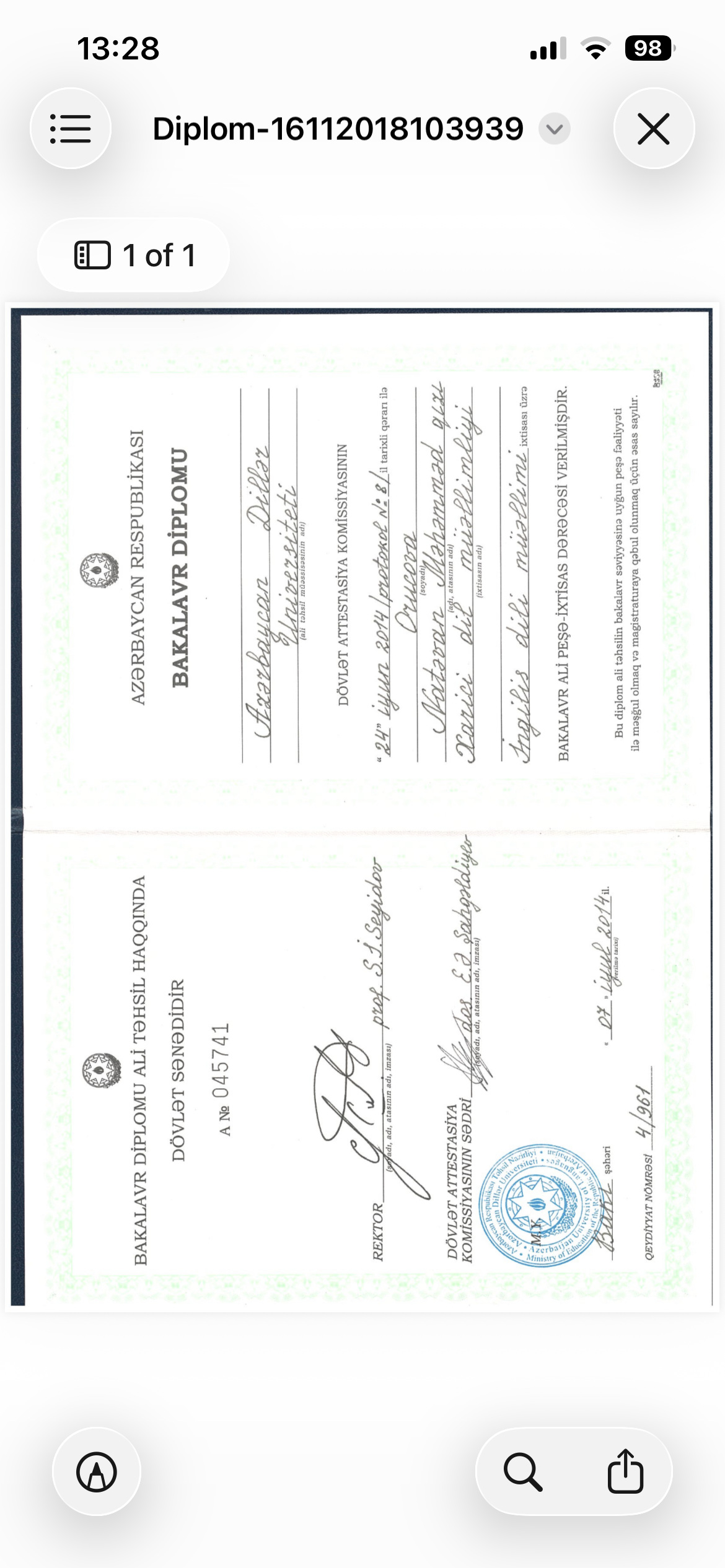 Azerbaycan Diller Universitetinde bakalavr, Baki Mühendislik Universitetinde ( kecmis Qafqaz Universiteti)Magistr pilleleri uzre ingilis bölmesinde tehsil almisam. Rus ve Azerbaycan bölmesi uzre istenilen yaş qrupuna uygun proqram seçmekle online dersleri isteye uygun olaraq individual ve qrup şeklinde keçirem. Hal-hazırda Dovlet Umumitehsil mektebinde muddetsiz muqavile esasinda Rus bölmesinde Ingilis dili müellimi kimi fealiyyet gösterirem.