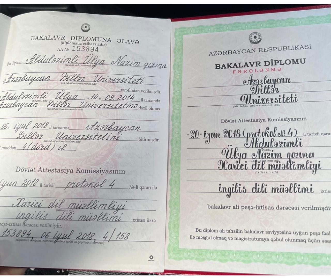 İngilis dili müəllimliyi üzrə