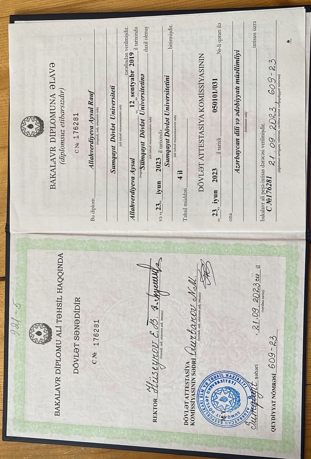 Sumqayıt Dövlət Universiteti (diplom