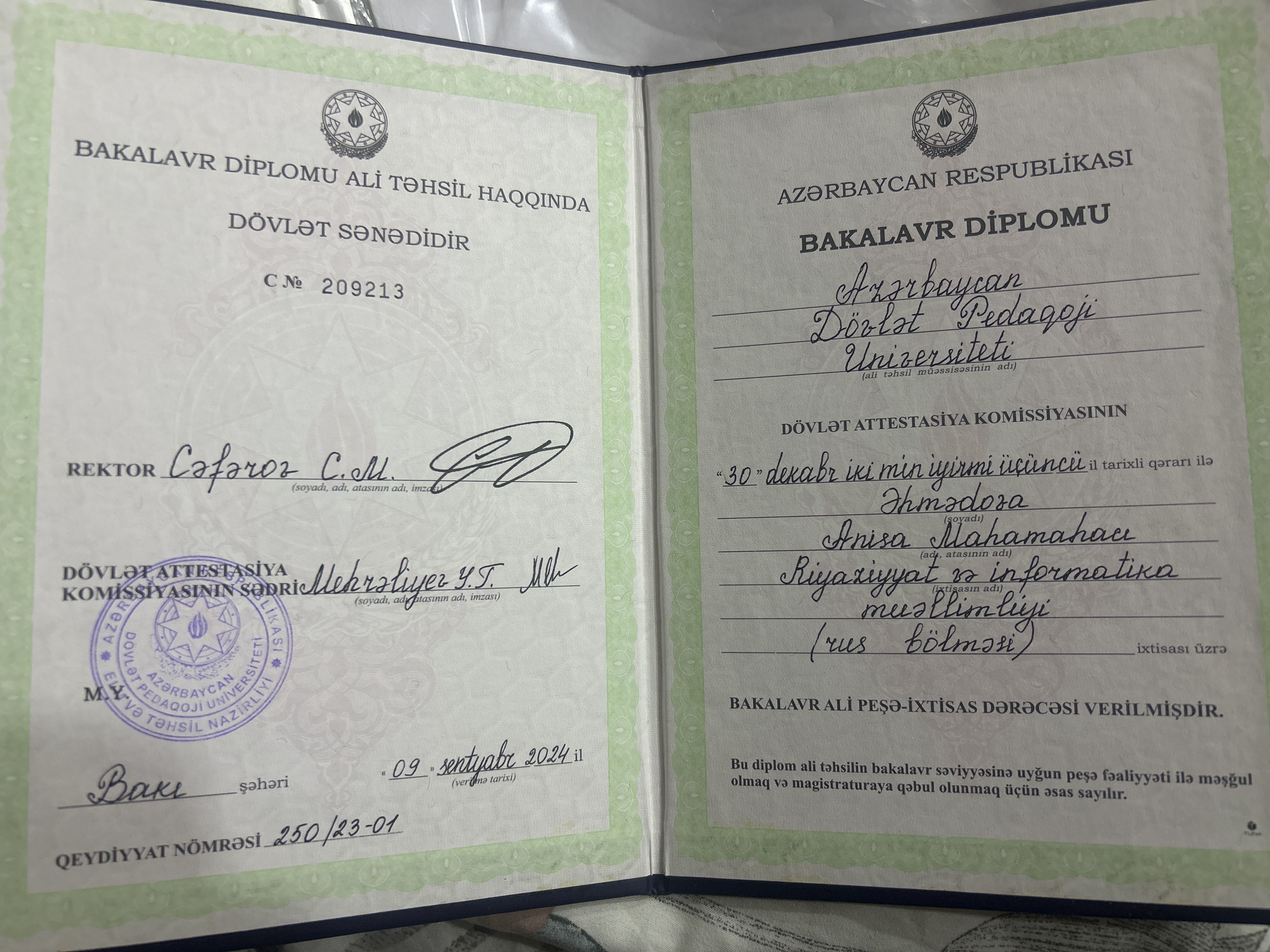 Men Hümmətova Rəqsanə 2023 cü ilde Azerbaycan Dövlət pedaqoji universitetinin Şeki filialınin Riyaziyyat və informatika ixtisasını bitirmişəm.Artiq 2 ildir ki repetitor kimi Riyaziyyat,informatika ve məntiq fənlərini tədris edirəm.Şagirdlerde derslere maraq yaratmaq üçün müxtəlif üsullardan istifadə edirəm.Belelikle şagirdlərdə derse böyük maraq ya