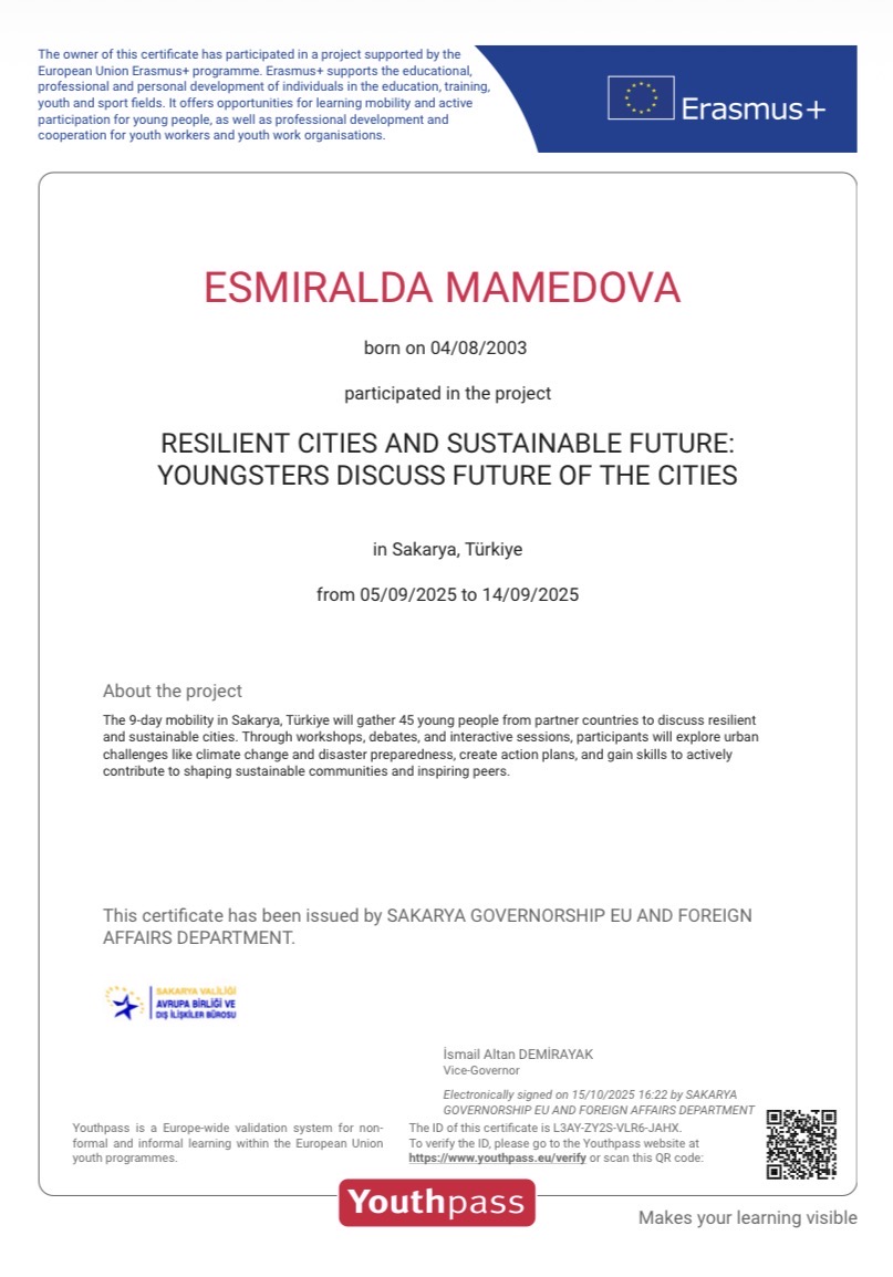 Erasmus+ Youth Exchange "Resilient Cities and Sustainable Future: Youngsters Discuss Future of the Cities." Sakarya, Turkiye