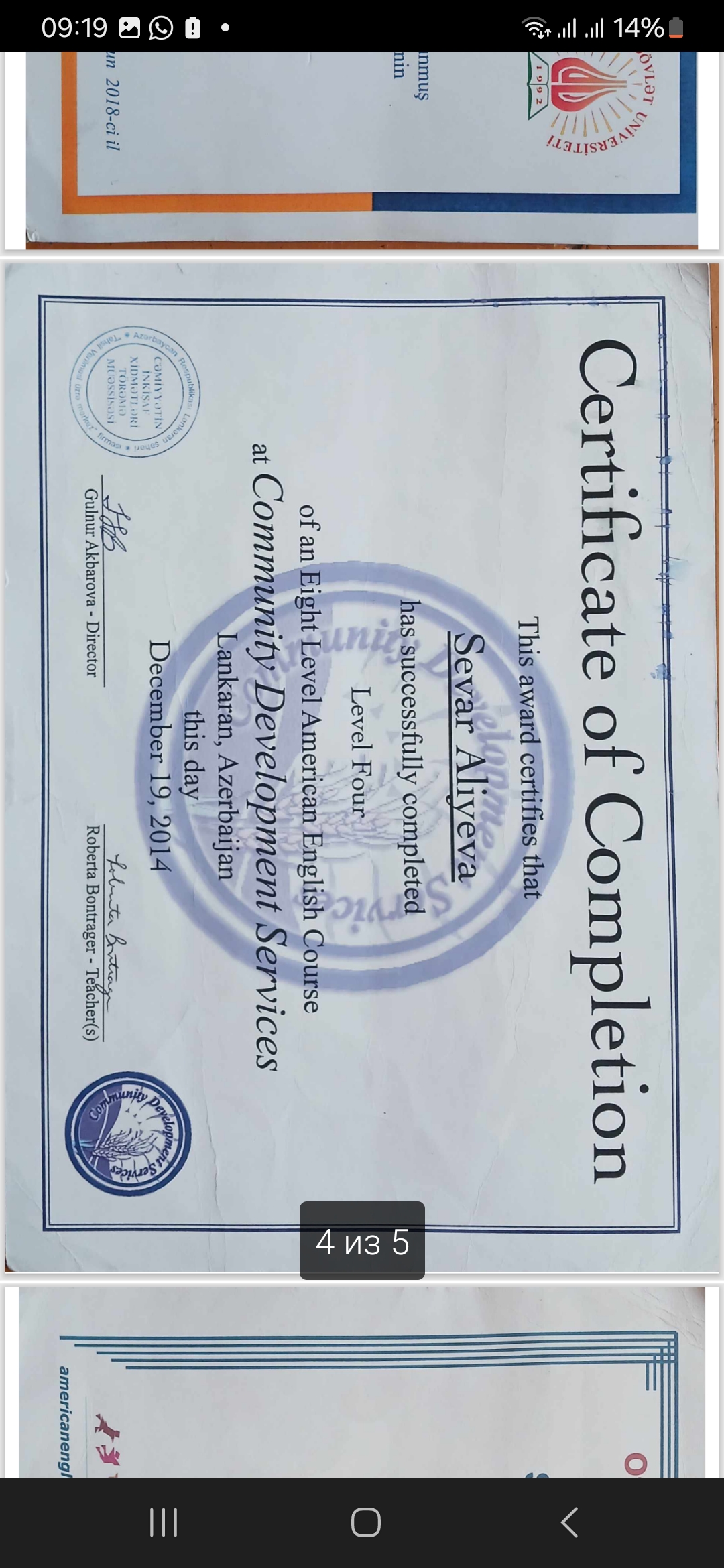 Ali məktəb təcrübəsi olan müəllim (magistr, doktorant) İngilis dili fənnindən və ibtidai sinifə (Preschool )(ingilis və rus bolm.) şagird hazırlayır. Dərslər həftədə 2 və ya 3 dəfə, əyani və ya online olmaqla 1.30 saat keçirilir. 1-11 ci sinif şagirdləri və eləcə də böyüklər