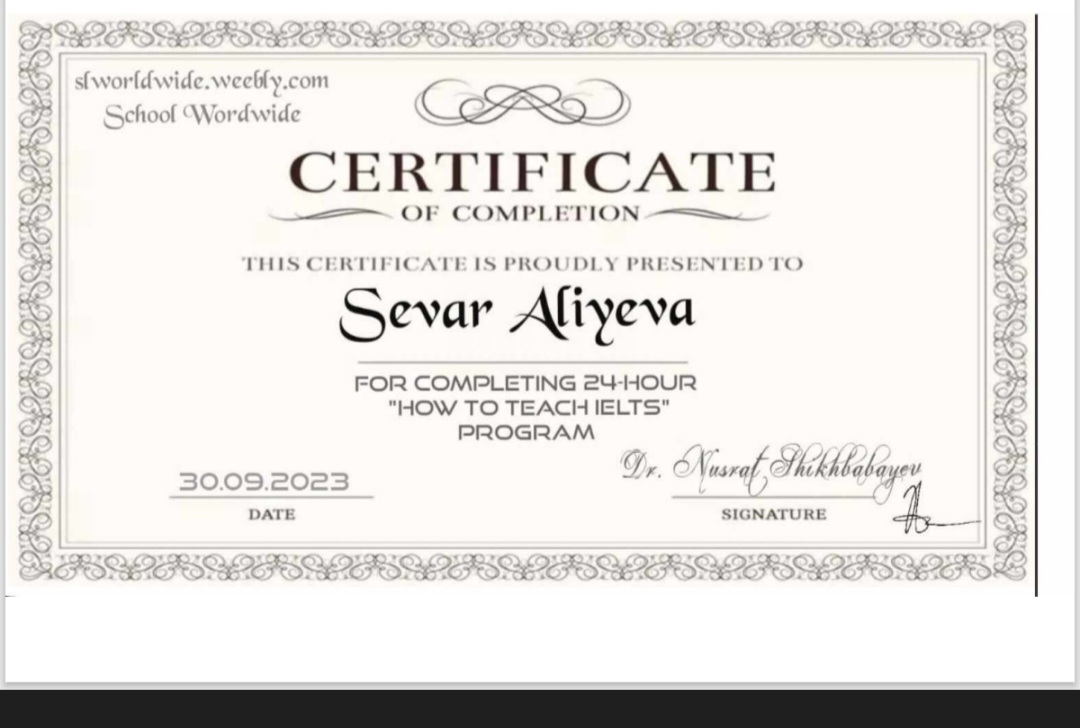 Kanadada təhsil almış İradə Əliyeva Ingilis dili müəllimliyi üzrə 25 ildən çox təcrübəyə malikdir. Tədris Az, Rus, İngilis bölmələri üzrə Onlayn formada yüksək səviyyədə aparılır. Dərslərdə danışıq və dinləmə üzərində daha çox praktika edilir, bununla yanaşı frazeoloji birləşmələr, ideomlar, lüğət və grammar baza, yazı və oxu, aksent bacarıqları fo