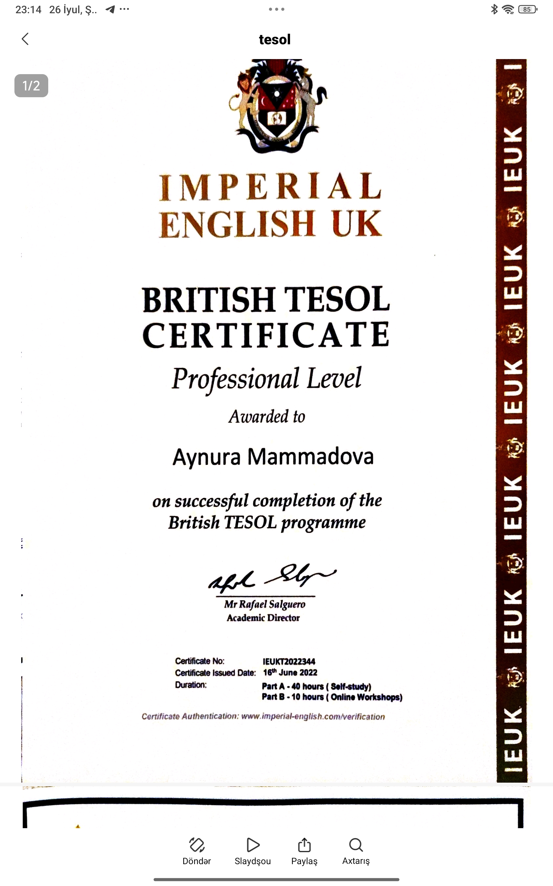 Mən, Aynurə Məmmədova, 35 yaşım var, ali tehsilliyem. Bakalavr təhsilimi Bakı Slavyan Universiteti, magistr təhsilimi Xezer Universitetinde almışam. Universiteti fərqlənmə diplomu ilə bitirmişəm. 2011ci ildən işləyirəm, General English və abiturient hazırlığı, ayrıca Speaking, Writing dərsləri, təkmilləşmə dərsəri, məktəb və liseylərə hazırlıq ,istər canlı, istərsə online şəkildə keçirəm. Hal hazırda Atatürk liseyində ingilis dili müəllimi işləyirəm. TESOL və TEFL sertifikatlarım var. Həzi Aslanov metro yaxınlığında yaşayıram